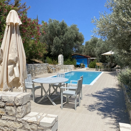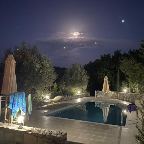 C’est une maison de charme construite par un constructeur de bateaux qui y a mis tout son coeur pour valoriser les matériaux en bois. Très jolie vue sur la mer qui est à 3 km à vol d’oiseau et à 7kms en voiture. La ville de Rethymnon est également à 7kms. L’accès se fait par un chemin privé d’1km de long qui traverse les cultures d’oliviers.