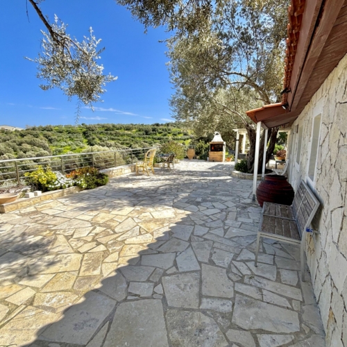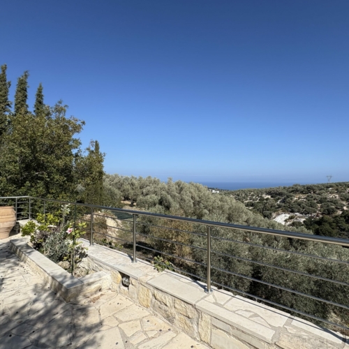 C’est une maison de charme construite par un constructeur de bateaux qui y a mis tout son coeur pour valoriser les matériaux en bois. Très jolie vue sur la mer qui est à 3 km à vol d’oiseau et à 7kms en voiture. La ville de Rethymnon est également à 7kms. L’accès se fait par un chemin privé d’1,5km de long qui traverse les cultures d’oliviers.